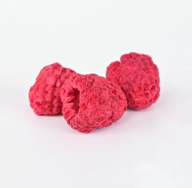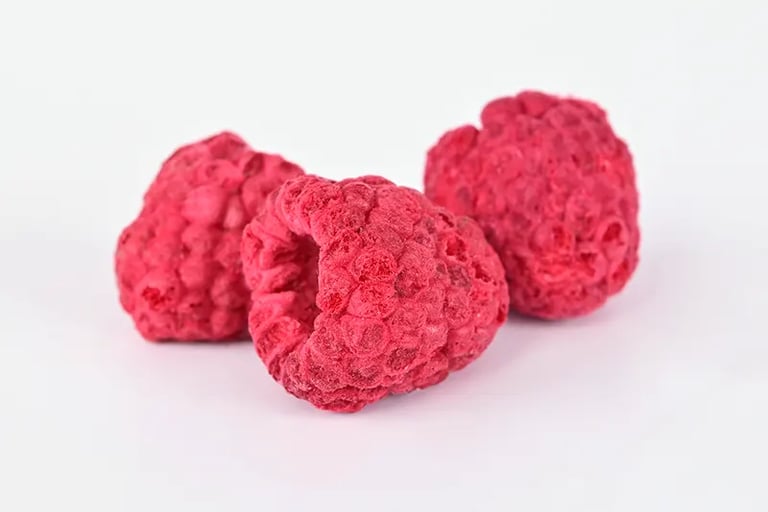 Produced by using lyophilisation method, freeze dried raspberries can be conveniently stored for extended periods without opening the packaging. Offering great convenience in use and high nutritional value in terms of its content other properties of freeze dried raspberry;